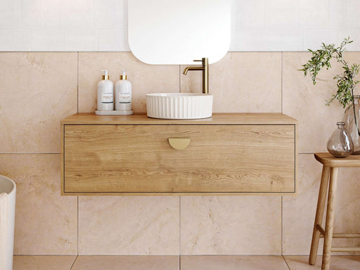 The Delaware vanity is the perfect addition to your bathroom if you’re looking to add a touch of warmth and style. The woodgrain finish and 16mm su...