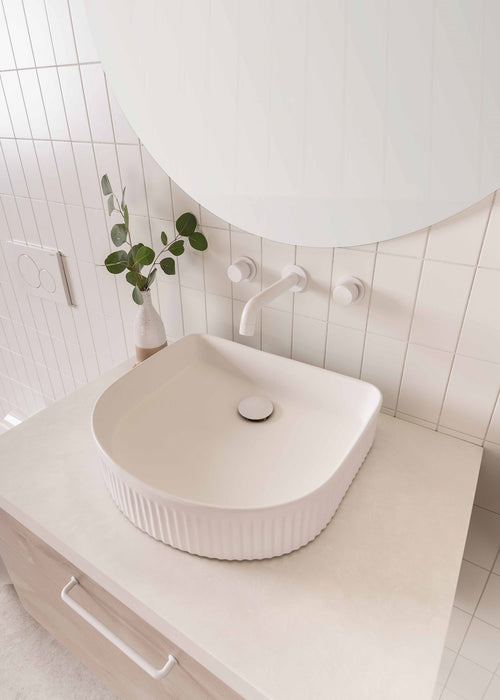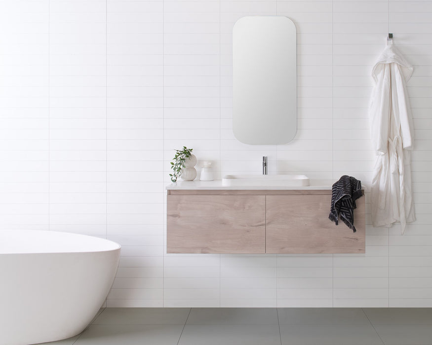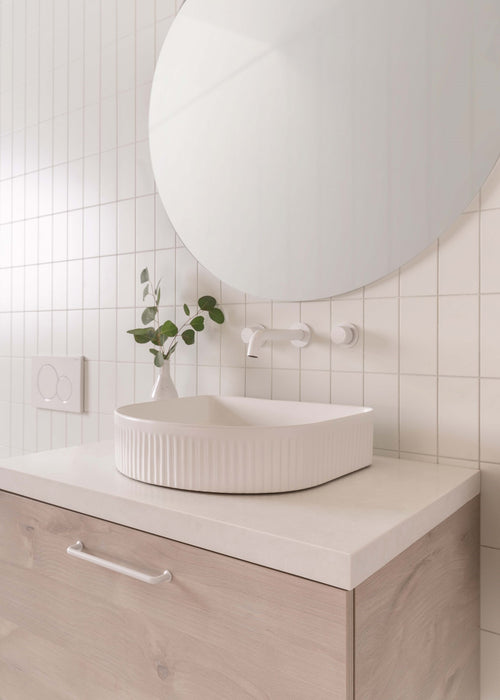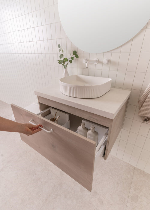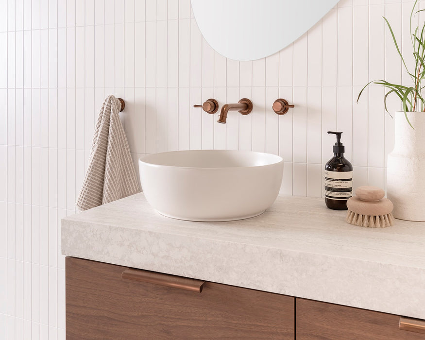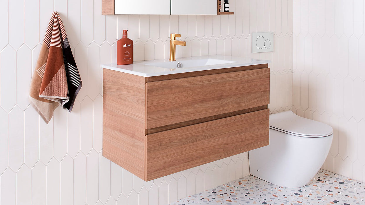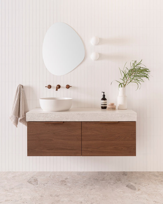 Choose from Ceramic or Cast Marble moulded tops (0, 1 or 3 tap hole available) or 20/40mm* benchtop options (Cherry Pie or Caesarstone).
