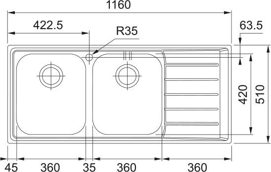 With a double bowl configuration and drainer, you will have ample room to work smarter in the kitchen. Use one bowl for soaking a crusty plate while you wash veggies in the other. The drainer is not only a space for drying dishware; use it to balance items for defrosting, or to carry out prep tasks. Available in both left hand and right hand drainer configuration.