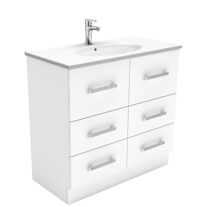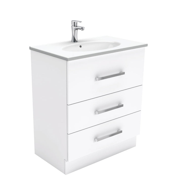 Made from fully vitrified china with a glazed finish. Vitrified china is fired at temperatures in excess of 1300°c, producing a crisp cool white colour that’s brighter than standard china.